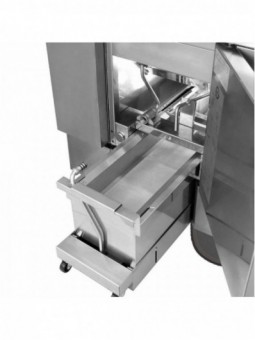 Y-vormige diepgetrokken kuip met afgeronde hoeken, voorzien van een koude zone. Gemaakt van AISI 304 roestvrij staal. Afvoerkraan (kogelkraan) en reservoir voor olieafzetting. Roestvrijstalen afdekking is standaard.
